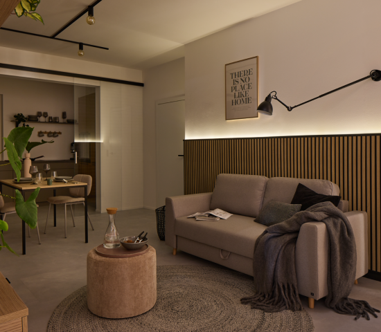 Passendes Zubehör wie Licht-Sockelleisten, Licht-Abschlussprofile und Lichtblenden in elegantem Schwarz ergänzen die Paneele optisch und funktional. Diese Komponenten sind speziell für die Integration von LED-Strips entwickelt und ermöglichen eine stilvolle Beleuchtung, die das Ambiente unterstreicht und die Paneele zu einem attraktiven Designelement macht. Die Fertigung erfolgt in der hochmodernen Produktionsstätte der NMC-Gruppe in Belgien, einem führenden Hersteller in der Schaumstofftechnologie mit hohen Qualitätsstandards.