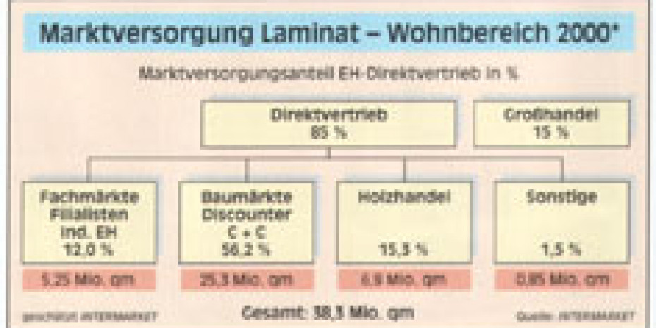Der zweite Teil der Studie liefert Erkenntnisse zum Markt der Laminat-, Holz-, Parkett und Korkböden. Hier zeigt sich, dass gerade diese Bodenbeläge auch künftig sehr gute Marktchancen versprechen. Gerade Laminat ein typisches Baumarktprodukt, das zu mehr als 50 Prozent über diese Vertriebslinie verkauft wird weist trotz hoher Wachstumszahlen in den vergangenen Jahren weiter steigende Marktanteile auf.