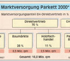 Auch Parkett wird seinen Marktanteil nach den Prognosen der Branchenspezialisten von Intermarket von 17,5 Mio. m² 1999 bis 2002 auf 22 Mio. m² steigern können. Wachstum auch bei Kork und zwar pro Jahr um rund zehn Prozent. Hier wurde für 1999 ein Marktanteil von vier Mio. m² errechnet und ein Wachstum von jeweils 0,5 Mio. m² pro Jahr bis 2002 prognostiziert.