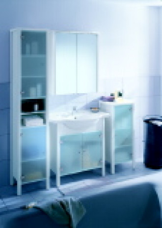 Charakteristisch für das neue Badprogramm „Lino“ von Eurofit ist die Betonung der horizontalen Linienführung. Die Türen aus satiniertem Sicherheitsglas sollen das junge Design unterstreichen. Die Badmöbel werden, mit Ausnahme der Oberschränke, freistehend aufgebaut, deshalb müssen die einzelnen Elemente nicht mit Dübeln an der Wand befestigt werden. Die Produkte sind kartonzerlegt. Zur Auswahl stehen Hoch- und Oberschrank, Wachtischunterschrank und Highboard, das zusätzlich mit Glasplatte und Relling versehen ist. Die Schränke sind universell einsetzbar und lassen sich auch als Dielen- oder Wohnzimmerschrank verwenden. (Eurofit, Postfach 3024, 32344 Stemwede)