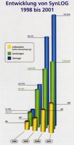 Auf dem BHB-Branchentreff während der DIY’TEC in Köln am 4. März 2002 wurde Synlog mit dem erstmals ausgelobten BHB-Kundenservice-Preis für Dienstleistung ausgezeichnet. Diese Auszeichnung hat das seit 1998 angetretene Konzept in den Mittelpunkt der Beobachtung der Marktteilnehmer gerückt. Die Bilanz für das Jahr 2001 lässt sich sehen: mehr als 300 aufgeschaltete Unternehmen, 1,6 Mio. Sendungen und 561.000 t Frachtmenge.