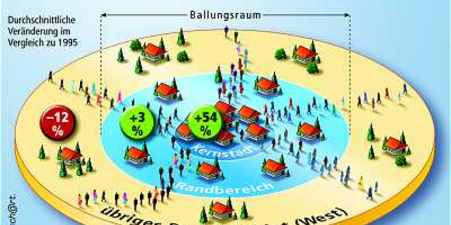 Überraschend ist, dass die zunehmende Präferenz für das Eigenheim gerade in den Kernstädten besonders deutlich ausfällt. Während der Geschosswohnungsbau hier seit 1995 um annähernd 60 Prozent einbrach (von 55.000 auf 22.500 Wohnungen), kletterten die Genehmigungen für Ein- und Zweifamilienhäuser um 54 Prozent von 8.500 auf über 13.000 Einheiten.