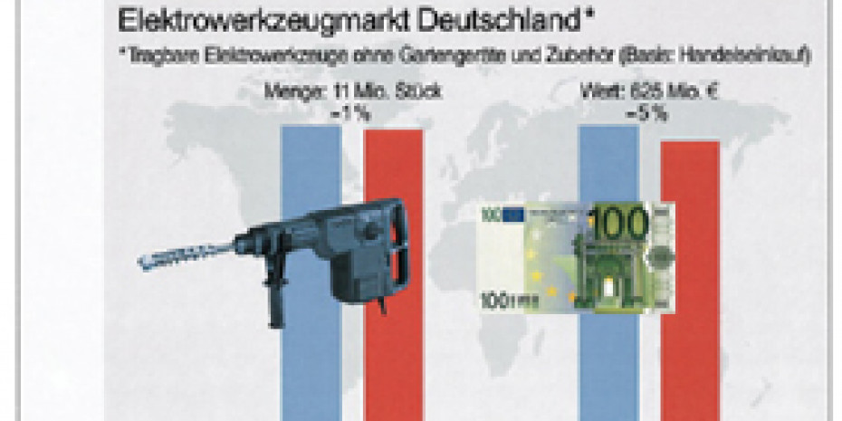 Insgesamt ging in Europa das Marktvolumen für Elektrowerkzeuge 2001 um zwei Prozent auf 2,5 Mrd. d zurück. Mengenmäßig ergab sich ein Rückgang von knapp einem Prozent (es wurden 34 Mio. Stück verkauft).