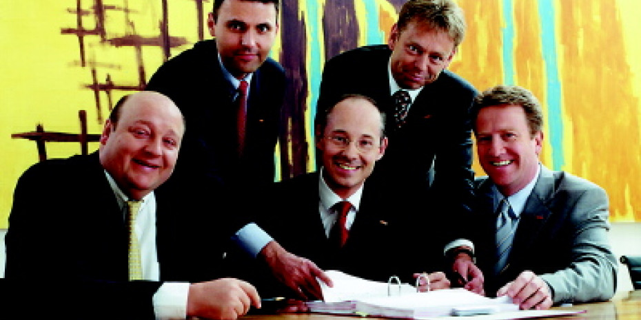 Der Vorstand der Baumax AG: (v.l.) Werner Neuwirth-Riedl, Hansjörg Greimel, Martin Essl, Alois Penninger und Walter Hitziger.