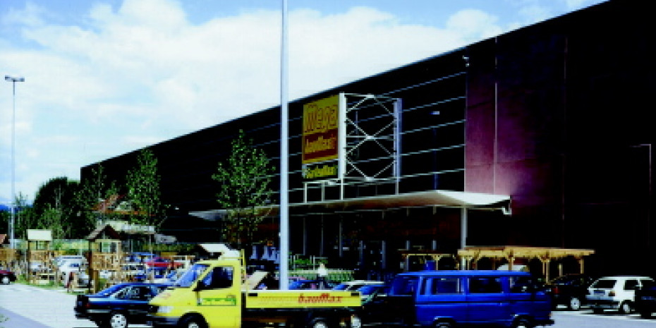 Der Baumax in Klagenfurt von außen: Andrang bei den Baustoffen.