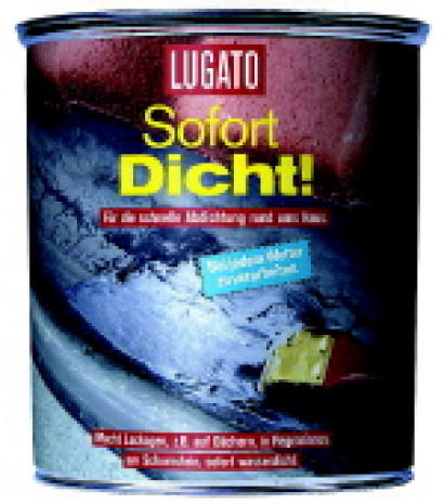 Für Streichabdichtung aller Art wie Anschlüsse, Löcher, Risse und Leckagen bietet Lugato das Produkt ,,Sofort dicht“. Es ist geeignet beispielsweise für die Verarbeitung auf Dächern, an Regenrinnen, Fallrohren, Kamin-und Schornsteinanschlüssen, Rohrdurchführungen etc. Das Produkt lässt sich bei jedem Wetter verarbeiten. Es ist Faserverstärkt, flexibel und rissüberbrückend. Verbrauch: ca. zwei Liter pro m2. (Lugato Chemie, Helbingstraße 60-62, 22047 Hamburg)