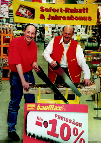 Mit dem Sofort-Rabatt, ab 350 € bei einmaligen Einkäufen auf Basis der Baumax Rabatt-Staffel und dem Sammel-Jahresbonus ab 3.500 € (volle zwölf Monate Sammelzeit), kann der Kunde immerhin bis zu zehn Prozent Rabatt einstreichen.