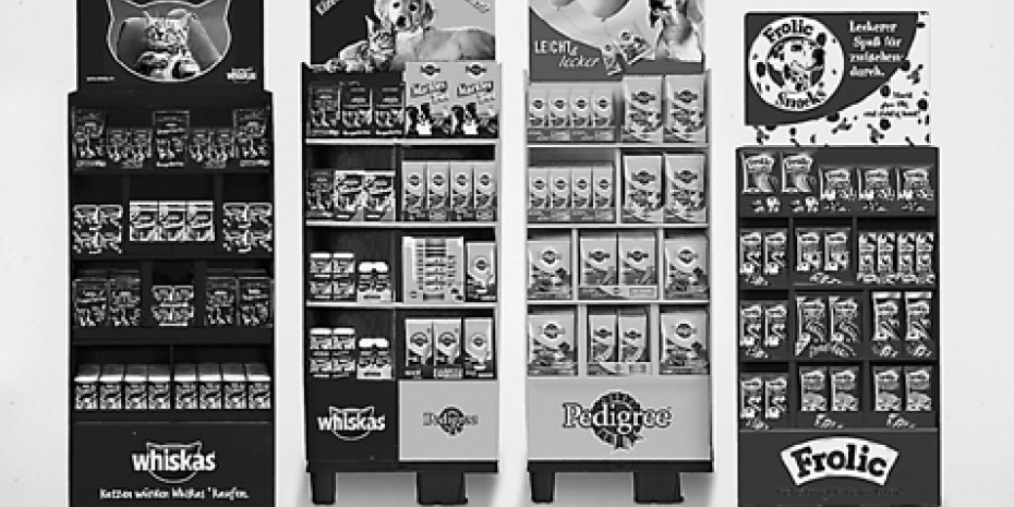 Eine immer wichtigere Rolle bei der Ernährung der Heimtiere spielen Snacks für Hunde und Katzen. Diesem Trend trägt Masterfoods Rechnung durch ein spezielles Snack-Display der Marken Whiskas, Pedigree und Frolic. Snacks, betont der Anbieter, seien auch im Heimtierbereich Impulsprodukte, deren Abverkauf durch eine attraktive Zweitplatzierung maßgeblich gefördert werde.