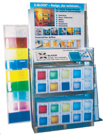 Zur Abverkaufsförderung hat Polymer zunächst ein ansprechendes Display mit Demoelementen und Kopfschildern entwickelt. In einem Prospekt findet der Endverbraucher Hinweise für den Aufbau des Systems sowie Anregungen, wie man die Wohnung mit den Blöcken gestalten kann. Auf der Rückseite lässt sich zudem mit Hilfe einer Tabelle der Bedarf für das geplante Projekt ermitteln. Auch in der Präsenz eines Dekoelementes aus X-Blöcken im ZDF-History-Studio erkennt man ein wirkungsvolles Abverkaufsmittel. „Wir erwarten“, prognostiziert Affenzeller, „dass sich die Erstbestückung von 200 Steinen mindestens fünf mal pro Jahr dreht.“