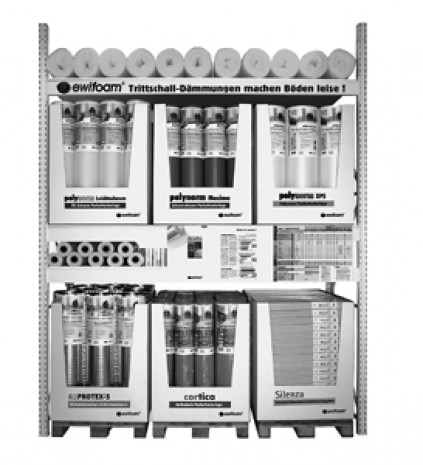 Wird jetzt auch mit Dispaly geliefert: das umfangreiche Produktprogramm zum Thema Trittschall von Ewifoam.