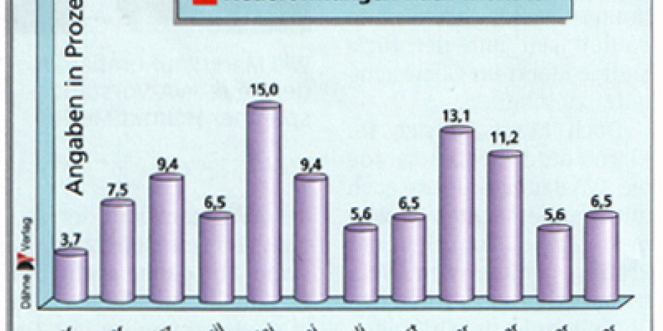 2. Die seit längerem zu beobachtende Tendenz zu immer größeren Verkaufsflächen wird auch im Jahr 2002 bei den neu eröffneten Märkten im wesentlichen bestätigt. So hatten im Berichtszeitraum 40,2 Prozent sämtlicher Neueröffnungen zwischen 5.000 m² Verkaufsfläche und 10.000 m² Verkaufsfläche, während dieser Anteil 2001 noch deutlich darunter bei 36,5 Prozent lag. Dafür musste in der Betriebsgrößenkategorie mit mehr als 10.000 m² Verkaufsfläche gegenüber dem Vorjahr ein Minus um 5,1 Prozentpunkte auf 34,1 Prozent festgestellt werden. Dabei gab es im Berichtszeitraum einige Baumärkte, deren gewichtete Verkaufsfläche von den Unternehmen mit rund 10.000 m² Verkaufsfläche beziffert wurde, die deshalb in die Kategorie bis 10.000 m² Verkaufsfläche eingereiht wurden. Wer 2002 sämtliche Baumärkte mit über 5.000 m² Verkaufsfläche betrachtet, kommt gegenüber 2001 auf ein Minus von 1,4 Prozentpunkte, und zwar von…