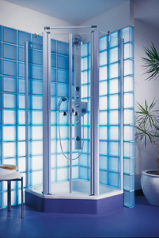 Sinnvoll bei kleinen Bädern: Bei der Elana-Fünfeckdusche lassen sich die Pendeltüren nach innen öffnen.