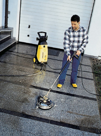 Der neue Flächenreiniger FR-30 von Kärcher, Winnenden, wird an das Strahlrohr des Hochdruckreinigers angeschlossen. Das Edelstahlgehäuse und der auswechselbare Bürstenkranz verhindern wirkungsvoll das Zurückspritzen des Wasserstrahls. Eigenen Angaben zufolge eignet sich der FR-30 für die Anwendung in Werkstätten, Waschhallen, Großküchen und Sanitärräumen ebenso wie auf Gehwegen, in Fußgängerzonen, Parkhäusern und Unterführungen.