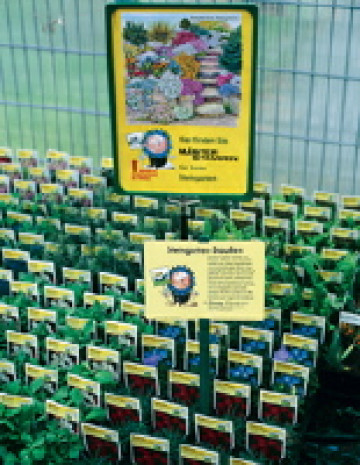 Um dem großen Kundeninteresse an der Staude mit entsprechenden Sortimenten zu begegnen, entwickelt die Firma Masterstauden, Holm, Platzierungskonzepte, die individuell auf den jeweiligen Standort zugeschnitten und saisonal angepasst werden. Durch den marktindividuellen jahreszeitlich festgelegten Platzierungsplan und das eigene Dispositionssystem kann auch nicht geschultes Verkaufspersonal die Nachbestellungen aktueller Ware leicht durchführen. Und die neuen Verkaufshilfen sorgen durch ihre Strukturierung und ihre Leitfarben für eine gute Übersichtlichkeit. Der Kunde wird durch dieses Leitsystem schnell und einfach an seine Wunschpflanze herangeführt. Auch die Etiketten reihen sich nahtlos in das Platzierungskonzept des Verkaufssystems ein. Bei den Bildetiketten rückt nun das farbige Piktogramm für die Einteilung der Stauden in Verwendungsgruppen nach vorne. So kann der Kunde auf einen Blick seine Favoriten erkennen und braucht das Etikett nicht umzudrehen. Der Kopf des Etiketts wurde farbig unterlegt. Die Einteilung in Gelb für Stauden, Grün für Gewürze und Blau für Wasserpflanzen soll nochmals die Orientierung und sofortige Erkennbarkeit verbessern.