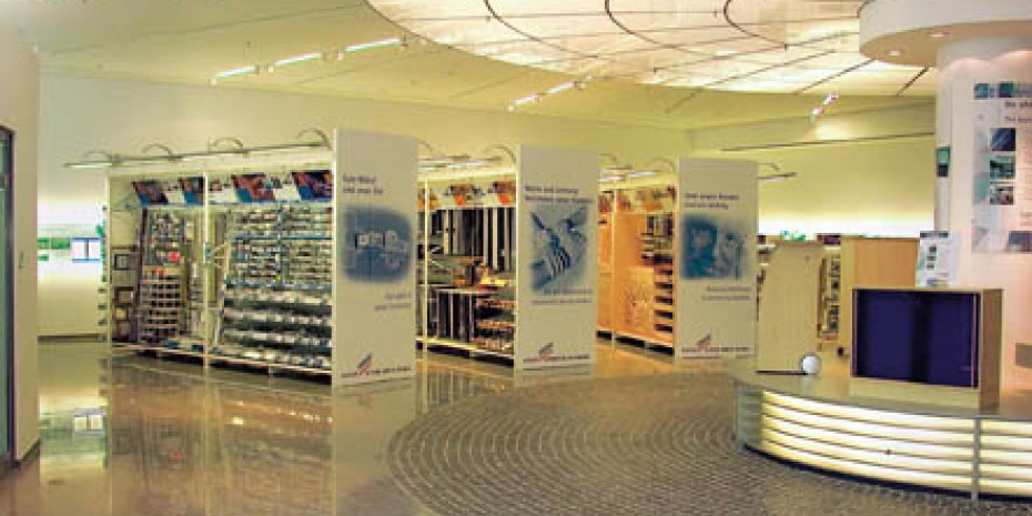 Showroom mit den Baumarkt-Sortimentspräsentationen.
