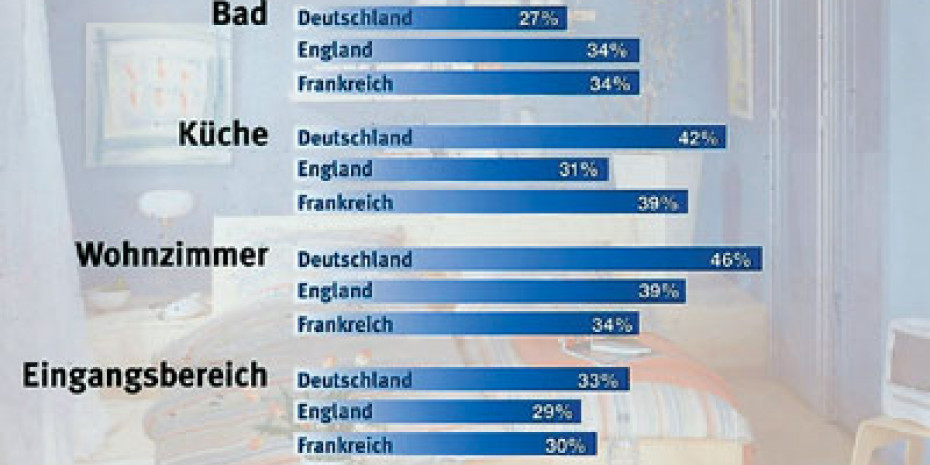 Denn gefragt nach der Wichtigkeit der einzelnen Räume geben Deutsche, Briten und Franzosen signifikant andere Antworten: Während Engländer und Franzosen der farblichen Gestaltung des Schlafzimmers die höchste Bedeutung beimessen, glänzen die Deutschen lieber mit einem repräsentativen Wohnzimmer. Dicht gefolgt, so die PQI-Studie weiter, von der Küche. Schlafzimmer dagegen würden in Deutschland sogar seltener mit frische Farbe versorgt als der…