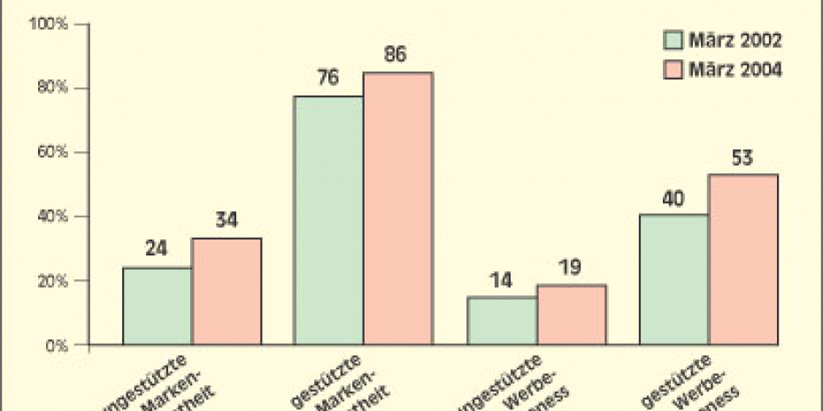 Steigerung der Werbeerinnerung (März 2002: 14 Prozent ungestützt, 40 Prozent gestützt)