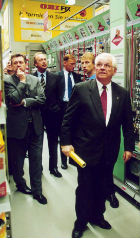 Immer vorneweg – Manfred Maus bei der Eröffnung des Obi-fix in Ratingen im März 2001.