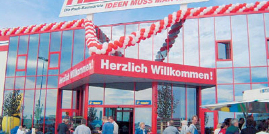 Die Eingangsfront des Beckumer Hellweg-Baumarktes am Eröffnungstag.