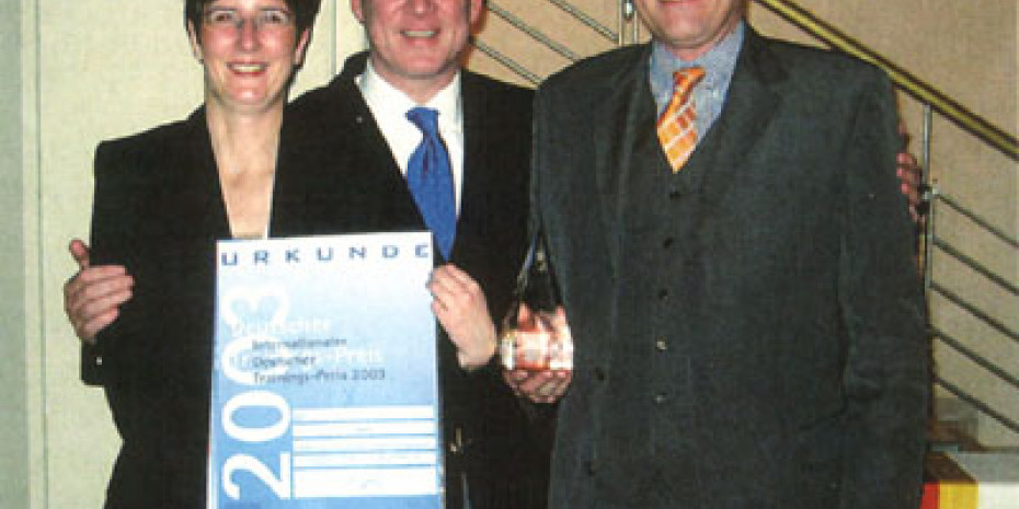 Stolz auf den Deutschen Trainingspreis in Gold - und das nun schon zum zweiten Mal: Schulungsleiter Marc-Oliver Windbacher (r.), seine Kollegin Dörte Röhrup und Johannes Fendt, Bereichsleiter Personal und Training der Hagebau.