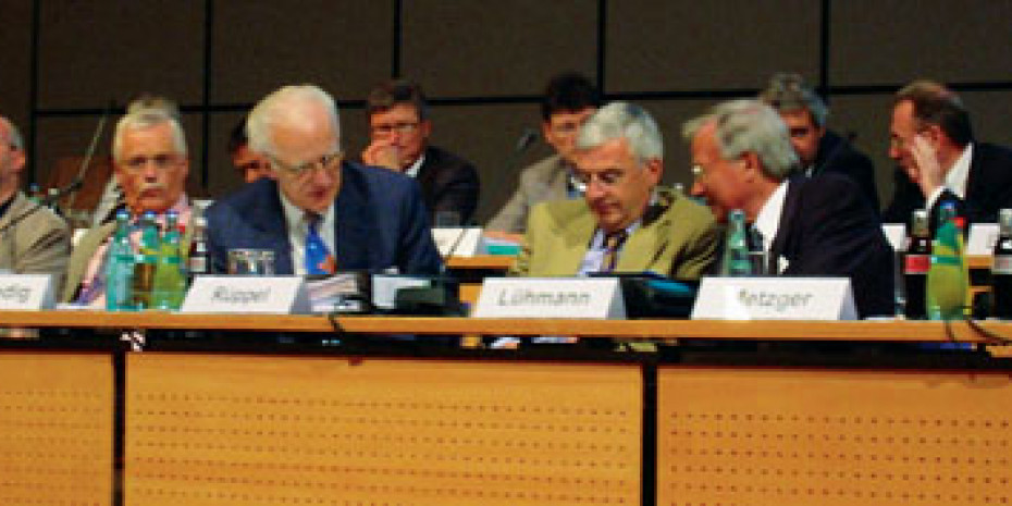 Das war sie also, die erste gemeinsame Gesellschafterversammlung. Obwohl: Eigentlich waren es noch zwei, die am Freitag, den 11. Juni, im Congress Center der Messe Frankfurt über die Bühne gingen. Denn schließlich mussten die jeweiligen Gesellschafter ja noch einmal getrennt über die Geschäftsberichte beider Unternehmen aus dem Jahre 2003 sowie über die Entlastung der beiden Geschäftsführungen und der Aufsichtsräte abstimmen.