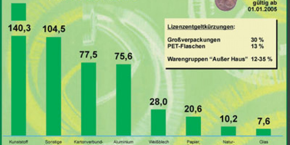 Künftig wird nur noch nach Material und Gewicht der Verpackung abgerechnet. Das bisherige Stückentgelt entfällt. Auch die pauschale Lizenzentgeltkürzung von 15 Prozent und die 3,5-prozentige warengruppenbezogene Kürzung sind bereits in den neuen Gewichtsentgelten berücksichtigt. „So wird die neue Preisstruktur schlanker und einfacher“, sagt Diether Buchmann, der für Vertrieb und Entsorgung zuständige Vorstand des Dualen Systems.