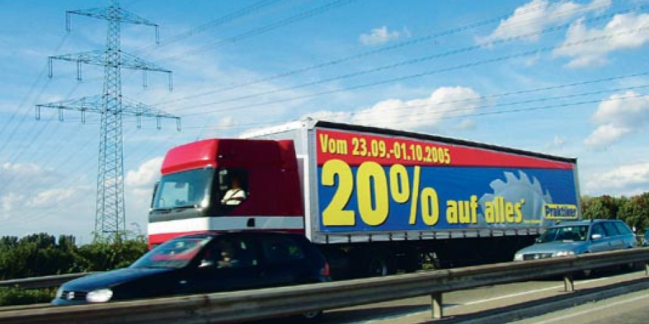 Praktiker setzt bei der Werbung auch auf LKWs.