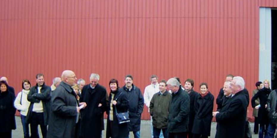 Die größte Halle in Mecklenburg-Vorpommern: Stolz zeigt Gerhard Wolfram (im Vordergrund links) den Jubiläumsgästen das neue Logistikzentrum.