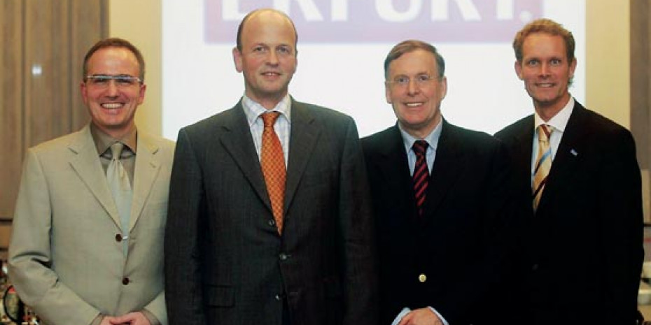 Die Unternehmensführung von Erfurt, v. l.: Lars Jentzen, Leiter Werbung und PR, Martin Erfurt, Inhaber und Geschäftsführer, Manfred Franken, Marketing- und Vertriebsleiter, und Heino von Dreele, Marketing Director.