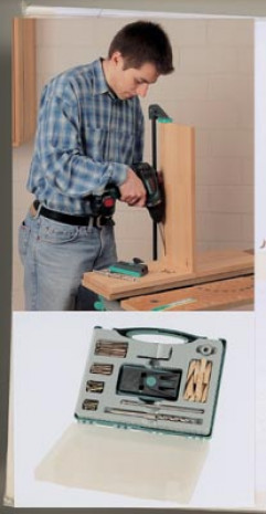 Dank der neuartigen Bohrhilfe „Undercover Jig“ aus dem Hause Wolfcraft lassen sich Regalböden versteckt befestigen und Gehrungen unsichtbar verschrauben. Der Heimwerker spare dadurch nicht nur das Verleimen, so der Anbieter, sondern die Verbindung lasse sich außerdem auch jederzeit wieder lösen. Das Mini-Werkzeug ist mit diagonal verlaufenden Kanälen versehen, die eine sichere Bohrung von schräg unten durch den Regalboden in die Seitenwand ermöglichen. Mit einem im Lieferumfang enthaltenen verlängerten Biteinsatz wird dann die Schraube eingedreht und die Öffnung anschließend mit einem Holzblender verschlossen. Das Ergebnis: Eine stabile und mit dem Auge kaum wahrnehmbare Holzverbindung. Zum Lieferumfang gehören unter anderem ein Stufenbohrer mit Tiefenstopp, ein verlängerter Bitaufsatz, Senkkopf-Schrauben und Holzblender.