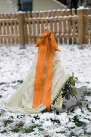 Frost- und Kälteschutz muss nicht nur vor den Härten des Winters schützen, sondern kann auch sehr dekorativ sein. Brandneu auf dem Markt ist das Winterschutz-Zelt von Windhager. Das Komplett-Set ist den Angaben zufolge einfach und schnell zusammengebaut. Es bietet Schutz vor Schneedruck, Frost und Wind. Unter dem Zelt entsteht ein Mikroklima – extreme Temperaturunterschiede werden ausgeglichen und das Einfrieren und Austrocknen der Pflanzen verhindert. Das integrierte Deko-Jute-Band verleiht dem Garten im Winter außerdem farbige Akzente.
