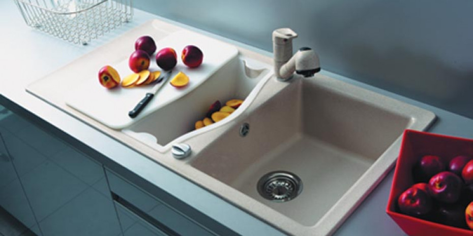 Viel Komfort bietet die 97 x 50 cm lange Meridian-Spüle von Eurodomo. Mit tiefem, geräumigen 1 1/2 Becken, Dreh-Excenterventil, verschiebbarem Kunststoff-Schneidebrett und einsetzbarer Siebschale fürs Abtropfbecken schaffe man damit auch in kleinen Küchen optimale Arbeitsbedingungen, so der Anbieter. Dazu gibt es farblich abgestimmte, funktionale Armaturen, zum Teil mit integrierter Schlauchbrause. Das Material: Eurostone. Dabei handele es sich um einen extrem strapazierfähigen Werkstoff, basierend auf hochwertigen Duroplasten, denen Glasfasern und Mineralien zugefügt werden. Das Material sei hart wie Stein, bruch-, schlag- und kratzfest, temperaturbeständig bis 260 C und lasse sich einfach reinigen. Das Produkt gibt es in den fünf Farbtönen Weiß, Grau, Beige, Schiefer und Blau.