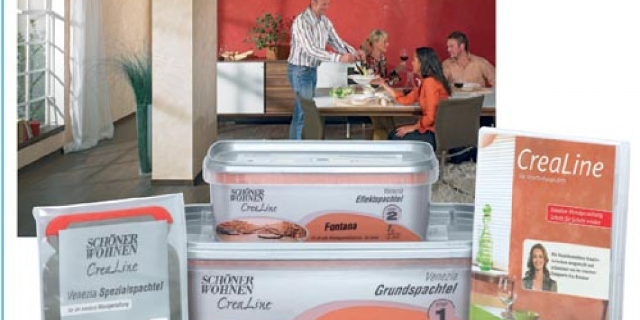 Kreative Wandgestaltung liegt weiterhin voll im Trend. Unter dem Namen „Crealine Venezia“ bietet Schöner Wohnen Farbe ein neues Produktsystem, bestehend aus Grund- und Effektspachtel, zur individuellen Wandgestaltung in acht traumhaften Farbtönen. Mit Crealine Venezia ließen sich, so das Unternehmen, im Handumdrehen marmorartige Effekte mit changierendem Glanz im Wohnbereich erzielen. So könne sich jedermann das Flair von Venedig ganz einfach nach Hause holen.