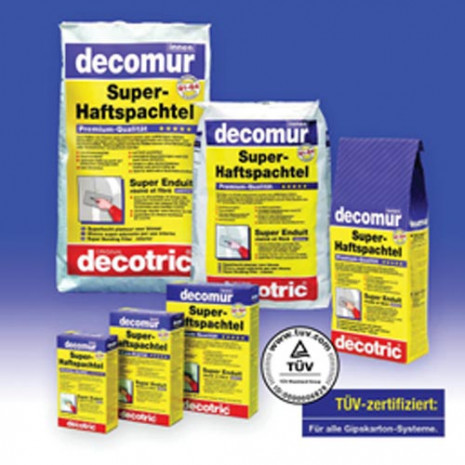 Profi-Produkte wie der Decomur Super-Haftspachtel lassen sich nicht mehr verbessern – nur noch vermehren, ist Decotric überzeugt. Neue Kleinpackungen bieten deshalb jetzt für jede Aufgabe die passende Materialmenge in professioneller Qualität. Das Produkt beschreibt der Anbieter folgendermaßen: sahnige Konsistenz für angenehmen Auftrag, perfekte Oberflächen in einem Zug, starke Haftung selbst auf glattem Beton, ohne Aufbrennen zu den Rändern bis auf Null ausziehbar (z. B. für Gipskartonfugen auch ohne Schleifen), Füllen tiefer Löcher in einem Arbeitsgang – ohne Schrumpfen oder Rissbildung. Lieferbar sind die Produkte in 25, 10, 5, 2, 1 und 0,5 kg.