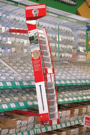 Suki.international hat sein Eisenwarensortiment um sechs Schraubenarten für professionelle Ansprüche bei der Befestigung von Terrassendielen, Holzverbindern, Flechtzäunen, Pfostenträgern, Bodendielen und Bootsbeplankungen erweitert. Hierzu liefert der Systemanbieter modulare Präsentationsbausteine, die sich leicht in bestehende Regalsysteme integrieren lassen. Alternativ können zusätzliche Präsenter zur variablen Ergänzung im Eisenwarenregal oder als Zweitplatzierung auch für den Außenbereich geordert werden.