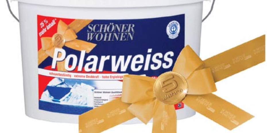 Schöner Wohnen Farbe feiert Geburtstag! Zum fünfjährigen Jubiläum gibt es den Testsieger (Heimwerkertest 1/2004) im 12,5 Liter-Jubiläumsgebinde zum Preis von zehn Litern. Schöner Wohnen Polarweiß überzeuge, so das Unternehmen, durch höchste Qualität (scheuerbeständig), extreme Deckkraft (i. d. R. reicht ein Anstrich) und hohe Ergiebigkeit. 12,5 Liter reichen für 90 bis 115 m2 bei einmaligem Anstrich.