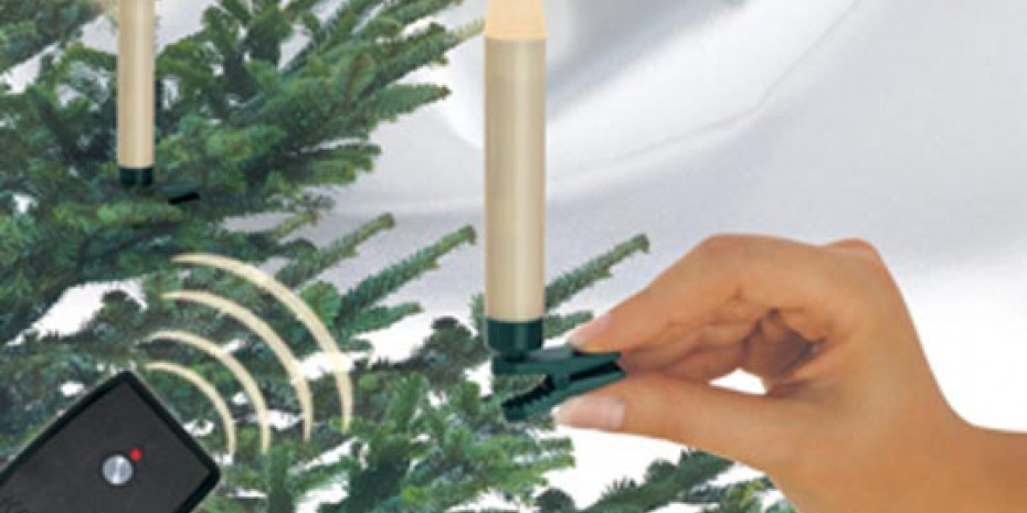 Pünktlich zu Weihnachten bringt Krinner die kabellose Christbaumkerze Lumix auf den Markt. Unabhängig von der Steckdose und ohne lästige Kabel, wie der Anbieter schreibt, werden die zehn energiesparenden LED-Kerzen mit dem Clip im Baum platziert. Die Kerzen werden bequem per Funkfernbedienung ein- und ausgeschaltet. Sie leuchten über 120 Stunden mit nur einer Batterie vom Typ AA. Das Set besteht aus zehn elfenbeinfarbenen Kerzen, Batterien, Funkfernbedienung inklusive Batterie sowie Bedienungsanleitung. Zusätzlich gibt es ein Erweiterungsset aus fünf Kerzen.