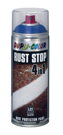 Das mühseliges Entrosten und die Neugestaltung alter Eisenteile werde jetzt zum Kinderspiel, ist Motip Dupli sicher. Der "Dupli-Color Rust Stop" mit dem 4-in-1-System sei ein vielseitig einsetzbares lösemittelhaltiges Dickschichtlacksystem, das die Eigenschaften einer effektiven Rostschutzgrundierung mit einem hochwertigen Decklack verbinde. Das 400-ml-Lackspray mit der speziellen Bindemittelkombination wirke sogar auf festsitzendem Restrost und Altanstrichen.