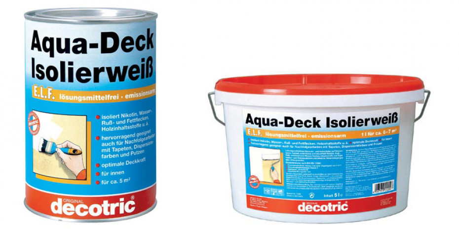 Nikotin, Rost, trockene Wasserflecken, Ruß oder andere durchschlagende Verunreinigungen lassen sich mit „decotric Aqua-Deck Isolierweiß E.L.F.“ ohne Lösungsmittel und lästige Gerüche sicher absperren, ist der Anbieter überzeugt. Hohes Deckvermögen und hervorragende Isolierwirkung machten problematische Verunreinigungen dauerhaft unschädlich. Die emissionsarme Farbe könne wie eine übliche Dispersionsfarbe als Schlussanstrich eingesetzt werden, wodurch auch unsichtbare Verunreinigungen zuverlässig überdeckt würden.