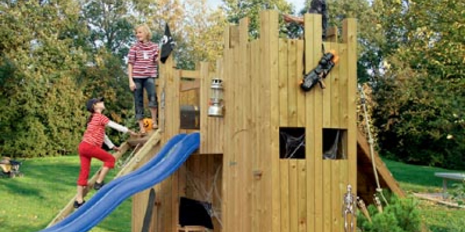 Das neue Systemspielgerät „Naseweis“ von Karibu bietet vielseitige Spielmöglichkeiten für Kinder zwischen drei und 14 Jahren, ist man bei dem Hersteller überzeugt. Es ähnelt einer Ritterburg und lässt sich individuell zusammenstellen. Das aus kesseldruckimprägniertem Holz gefertigte Produkt besteht aus einem Grundturm (1,02 x 1,02 x 2,50 m), der in typischer Ritterburgoptik mit Zinnen und Ausguckfenstern ausgestattet ist. Den Turm kann man mit Anbauten und Zuberhör erweitern. Zur Verfügung stehen eine Holzrampe, Kletternetz oder -taue, Leitern oder eine Kletterwand. Zwei Burgtürme können mit einem Brückenanbau verbunden werden. Außerdem werden eine Wellenrutsche in zwei Längen und ein variierbarer Schaukelanbau angeboten.
