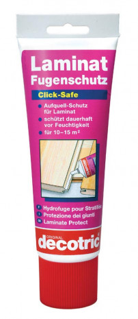 Feuchtigkeit kann die Fugen von Click-Laminat aufquellen und undicht werden lassen, wodurch weitere Feuchtigkeit und Schmutz ungehindert eindringen können. „decotric Laminat-Fugenschutz“ imprägniere die Fugen dauerhaft gegen Feuchtigkeit und deren Folgen, so der Anbieter Decotric. Das Produkt werde vor dem Zusammenfügen der Paneele auf die Oberseite der Feder aufgetragen und bilde beim Zusammenclicken einen geschlossenen Schutzfilm. Überschüssiges Material trete nach oben aus und wird feucht abgewischt.