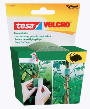 Tesa bietet zum Befestigen von jungen Bäumen und Sträuchern den neuen pflanzenfreundlichen „Velcro Baumbinder“. Erhältlich ist das Produkt in Grün in der Größe 50 mm x 5 m. Es schließe in sich selbst, sei witterungsbeständig, stark und widerstandsfähig. Zudem sei es individuell zuschneidbar.
