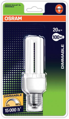 Ob gedämpftes Licht für einen gemütlichen Fernsehabend oder die optimale Ausleuchtung des Schreibtischs – mit der neuen Energiesparlampe „Dulux El Dim“ lässt sich die Beleuchtung im Zimmer, so Osram, individuell regeln, ohne viel Strom zu verbrauchen. Das Licht kann von sieben bis 100 Prozent stufenlos und sanft gedimmt werden. Das Ein- und Ausschalten der Lampe sei auf jedem Level möglich. Dank eines E27-Sockels ersetze das Produkt herkömmliche Glühbirnen einfach und schnell. Die helle 20 Watt Lampe hat, so der Anbieter, eine Lebensdauer von 15 Jahren und kann bis zu 500.000-mal ein- und ausgeschaltet werden.