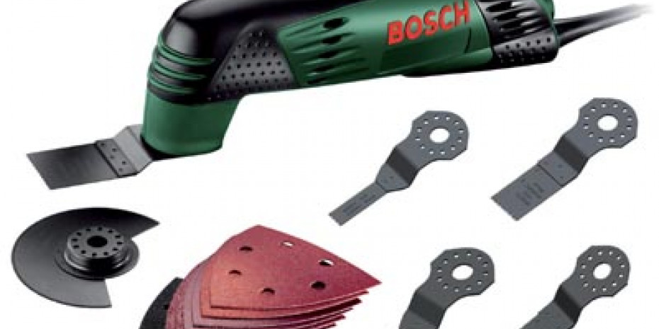Der „PMF 180 E Multi“ von Bosch ist ein multifunktionales Elektrowerkzeug. Es nimmt dem Heimwerker Tausende kleine Arbeiten ab, die er bisher mit Handwerkzeugen erledigen musste: Sägen, Schleifen oder Schneiden – alles, so Bosch, geht mühelos und schnell. Spezielle Tauchsägeschnitte an Arbeitsplatten für die Küche, das bündige Abtrennen von Kupferrohren, überstehenden Nägeln oder Schrauben oder das Zuschneiden von Fliesen seien für das Elektrowerkzeug kein Problem. Zur jeweiligen Aufgabe gibt es geeignetes Zubehör. Das PMF 180 E Multi-Set enthält einen Deltaschleifer-Aufsatz mit sechs Schleifblättern sowie ein Segmentsägeblatt und ein Tauchsägeblatt mit aufgedruckter Tiefen-Skala (0 bis 3,5 Zentimeter).