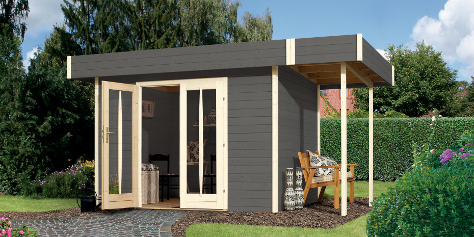 Das Flachdachhaus Cube von Karibu ist ein Premium-Gartenhaus mit einer Wandstärke von 28 mm. Es ist mit einer großzügigen Doppelflügeltür inklusive Echtglasfenstern und Profibeschlägen ausgestattet. Der Massivholzboden besteht aus 19 mm starker nordischer Fichte, das Dach aus 18 mm Rauspund inklusive Dachpappe und einer stabilen umlaufenden Blende. Das exklusive Gartenhaus ist in den Farbgebungen Naturbelassen oder Terragrau sowie in den drei Größen 241cm x 246 cm, 301 cm x 246 cm und 301 cm x 306 cm bei einer Höhe von jeweils 226 cm erhältlich.www.karibu.de