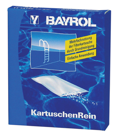 Um die optimale Wirkung des Poolfilters zu erzielen, ist es erforderlich, ihn regelmäßig von Schmutz und Fett zu befreien. Das gilt insbesondere für Kartuschenfilter, da sich die feinen Poren schnell zusetzen. Kartuschen-Rein von Bayrol entfernt zuverlässig den im Kartuschenfilter angesammelten Kalk sowie Fett und Schmutz. Dadurch werden die Filterporen wieder geöffnet, und der Mehrfachnutzung der normalerweise nicht wieder verwendbaren Kartusche steht nichts mehr im Wege. Das spart nicht nur die lästige Suche nach der passenden Filterkartusche, sondern schont auch Umwelt und Geldbeutel.www.bayrol.de
