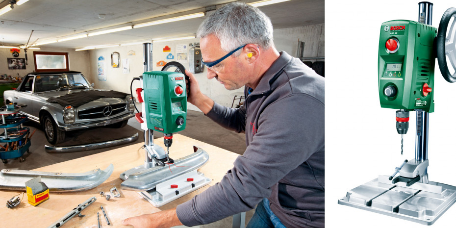 Die neu entwickelte Tischbohrmaschine PBD 40 von Bosch wartet mit einer ganzen Reihe von innovativen Detaillösungen auf. Denn mit herkömmlichen Bohrmaschinen stößt man beim Bohren in harte Materialien oder kleiner Werkstücke schnell an Grenzen. Ganz anders mit der leistungsstarken und präzisen Bosch Tischbohrmaschine PBD 40. Als Stationärgerät ist diese schnell einsatzbereit und unverzichtbar für einen ambitionierten Heimwerker. Die exakte Bohrlochposition lässt sich mit einem Knopfdruck ermitteln. Die PDB 40 Tischbohrmaschine ist mit einem integrierten Laser als Bohrhilfe ausgestattet: für einfaches und präzises Bohren. Dank elektronischer Drehzahlanzeige und Kontastant-Electronic können kontrollierte materialgerechte Drehzahlen einfach und genau voreingestellt werden. Der kompakte Multischalter steuert Start und Quick-Stop sowie Kontrollfunktionen in nur einem Bedienteil. Mit der PBD 40 lassen sich komfortabel hochpräzise Bohrergebnisse erzielen. www.bosch.de