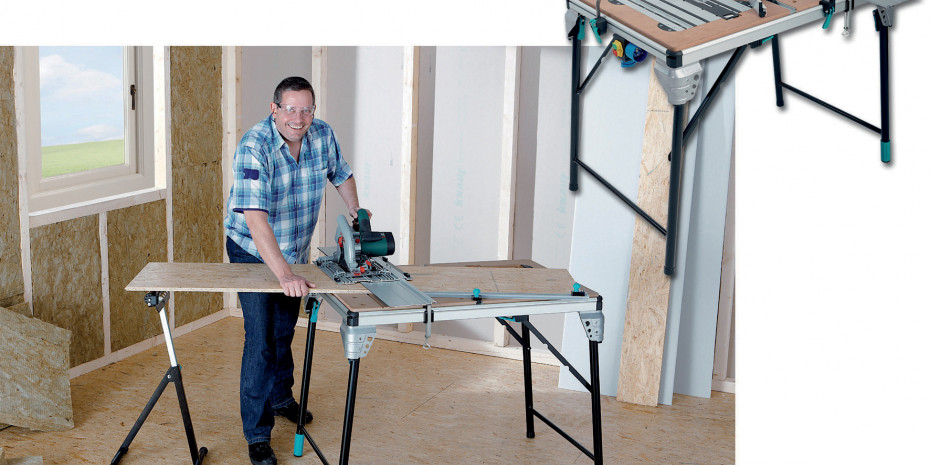 Tischkreissäge, Handkreissäge, Stichsäge oder Oberfräse – Der neue Master cut 2000 von Wolfcraft ist inklusive umfangreicher Ausstattung eine stabile Arbeitsstation für jede Art präziser Zuschnitte. Zusätzlich dient seine 103,5 x 69,5 cm große MDF-Platte als vielseitige Arbeitsfläche für alle übrigen Heimwerkertätigkeiten. Für Standsicherheit sorgt ein Aluminiumgestell mit höhenjustierbarem Fuß zum Ausgleich von Bodenunebenheiten. Dank einklappbarer Beine lässt sich der Tisch auch bei Bodenbelagsarbeiten einsetzen, leicht transportieren und platzsparend lagern. www.wolfcraft.de