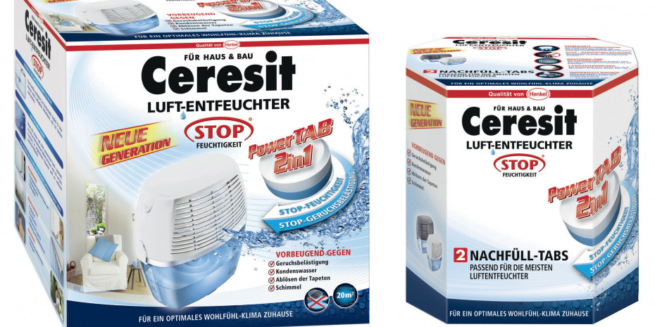 Jeder siebte Deutsche hat ein Problem mit zu hoher Luftfeuchtigkeit. 44 Prozent der Verwender von Luft-Entfeuchtern klagen zudem über schlechte Gerüche (Quelle: Focus Online 2011 bzw. Unabhängiges Marktforschungsinstitut 2010). Die 2-in-1-Lösung kommt von Ceresit. Zum bewährten Luftentfeuchter gibt es jetzt Tabs mit patentierter Anti-Geruchstechnologie. Das neue Power Tab 2-in-1 entzieht der Raumluft überschüssige Feuchtigkeit und sorgt mit seiner zweiten Phase dafür, dass Gerüche absorbiert und neutralisiert, statt bloß überdeckt werden. www.stopfeuchtigkeit.de
