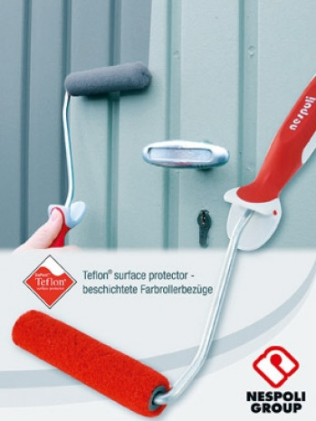 Der teflonbeschichtete Farbroller von Nespoli garantiert ein schnelleres, leichteres und besseres Streichergebnis. Die Teflon surface protector-Beschichtung ermöglicht eine höhere Farbaufnahme und bessere Farbabgabe für ein komfortables und schnelleres Arbeiten. Nach dem Streichen sind die Teflon surface protector-beschichteten Farbrollerbezüge bei geringem Wasserverbrauch sehr leicht zu reinigen und somit umweltfreundlich. Der Teflon surface protector Red Fibre-Bezug ist abriebfest, flusenarm und eignet sich gleichermaßen gut für lösemittelhaltige und wasserbasierende Lacke. Angesichts des höheren Farbauftrags und einem streifenfreien Farbverlauf erzielt man einen optimalen hochdeckenden, satten Farbanstrich mit gleichzeitig hoher Schutzwirkung. www.nespoligroup.de